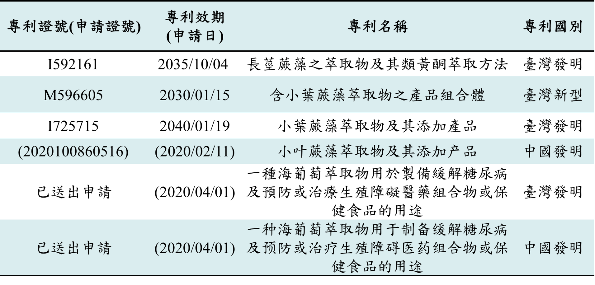 臺灣研發團隊利用臺灣在地海藻-小葉蕨藻,開發建立小葉蕨藻機能性成分萃取技術,並取得專利。